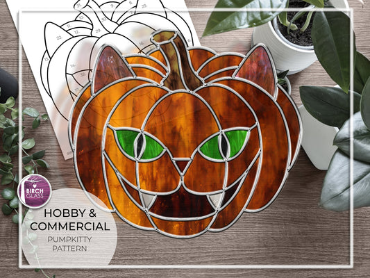 PATTERN • Halloween Pumpkitty Stained Glass Pattern