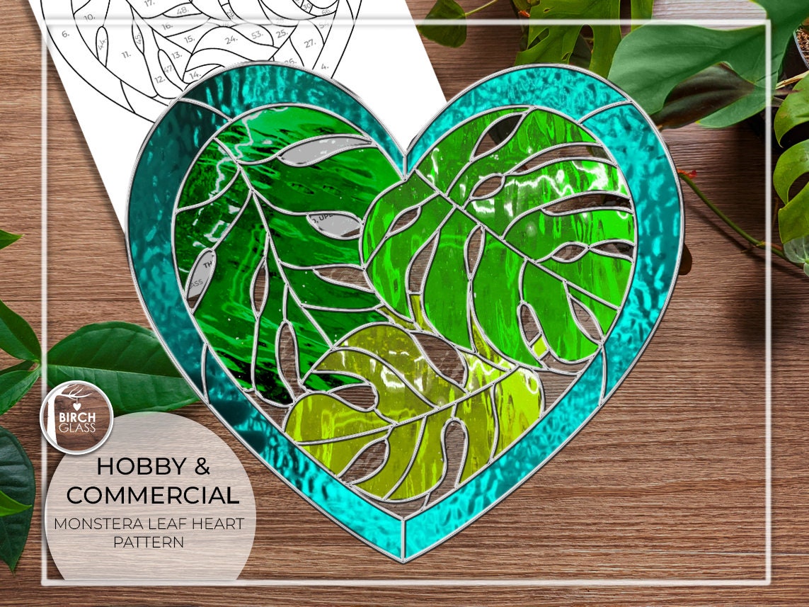 Thank you for checking out my Monstera Leaf Heart Stained Glass pattern! Please note that the image above is a render, to show roughly what it could look like in glass! (This often makes small pieces look even smaller!)
