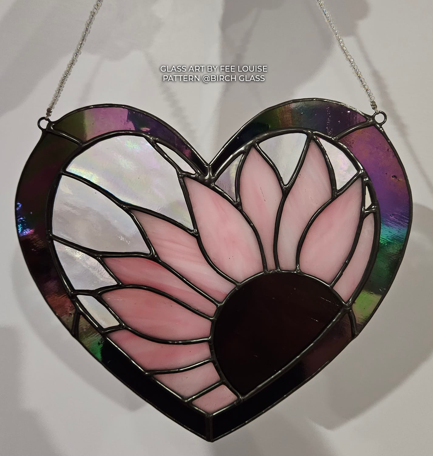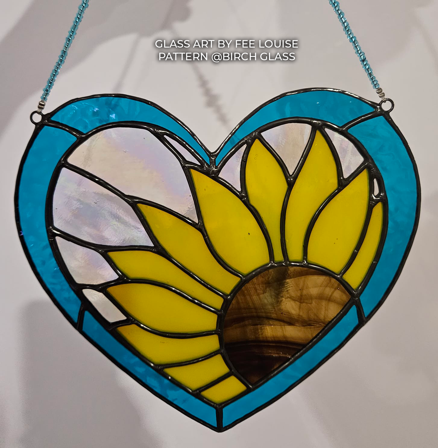 Thank you for checking out my Sunflower Heart Stained Glass pattern! Please note that the image above is a render, to show roughly what it could look like in glass! (This often makes small pieces look even smaller!)