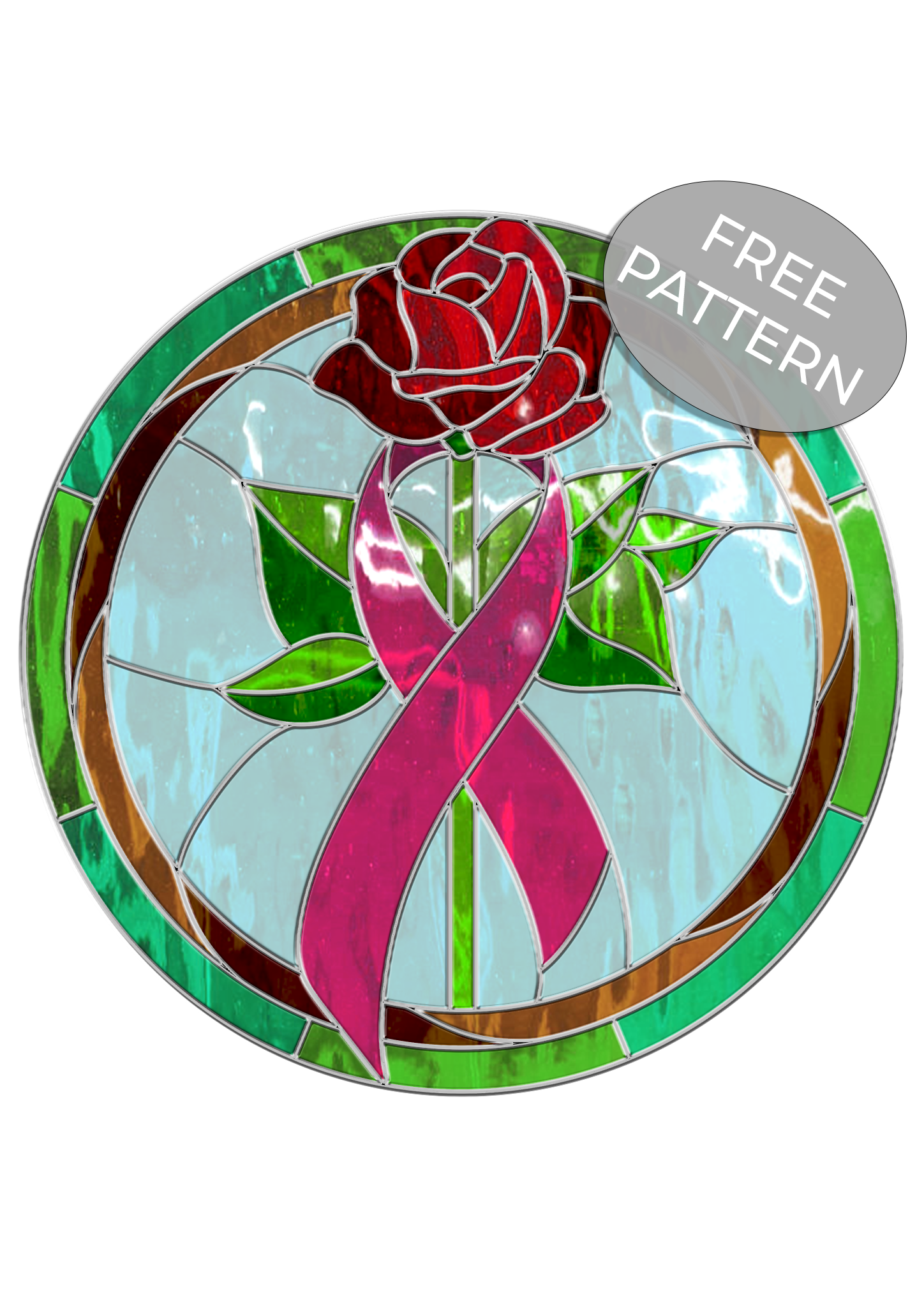 Free Unique Stained Glass Pattern, Digital Download, Rose, Ribbon, Charity Ribbon, Cancer Awareness, Round Panel.