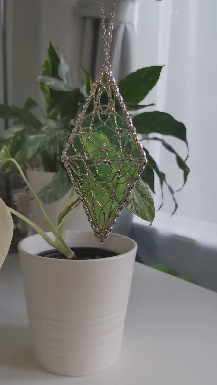 GREEN Glass Magic Crystal Suncatcher Plant Stake, Crystal Ornament