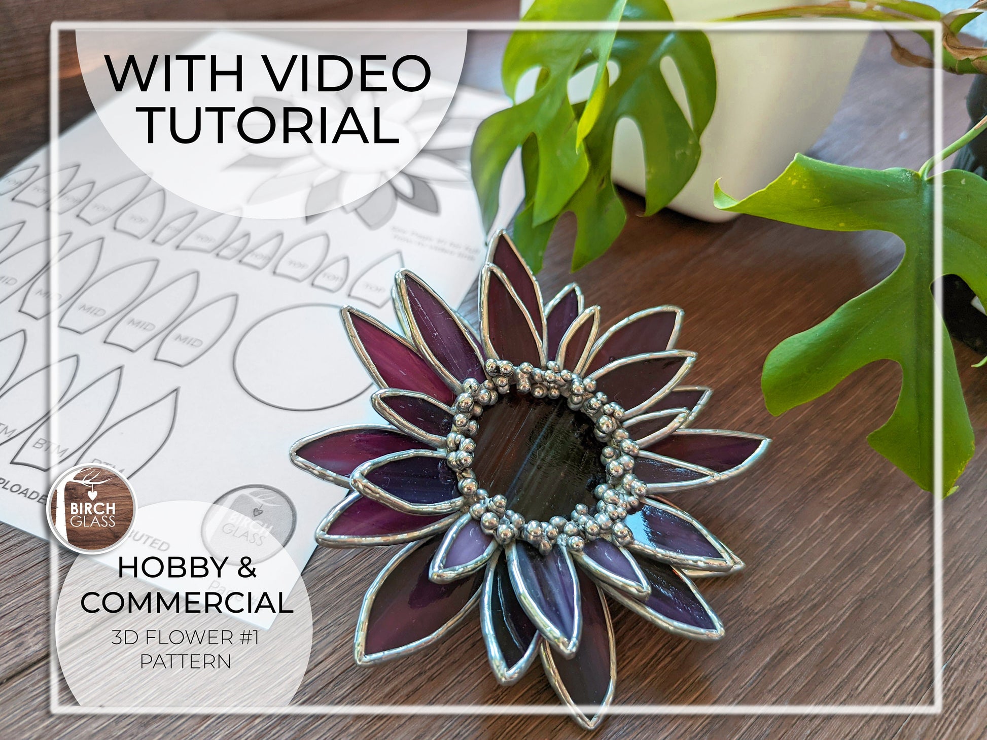 I wanted to share this pattern so that others can create their own 3D flowers using stained glass, it really is a wonderful craft, and I especially love creating 3D pieces. This piece looks great as a hanging suncatcher, or even just on a table top!