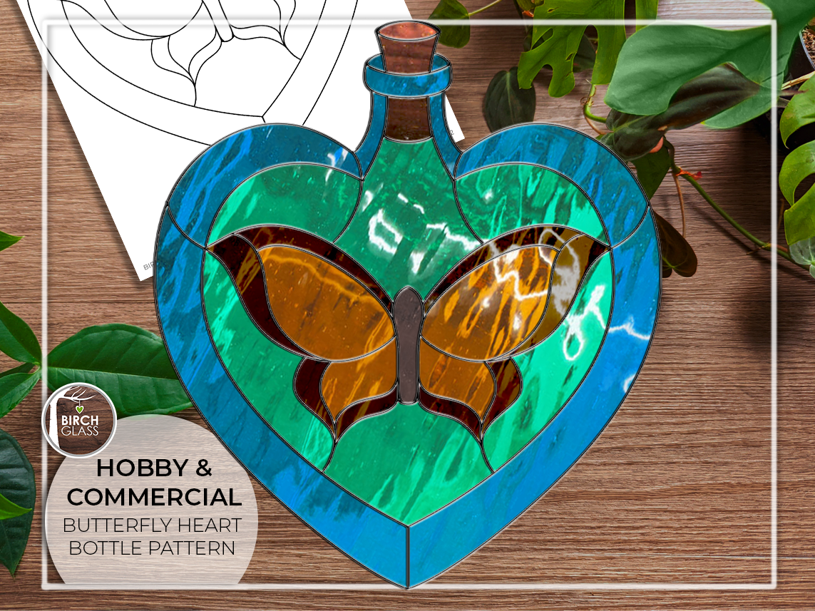 PATTERN • Butterfly Heart Shaped Bottle Stained Glass Pattern