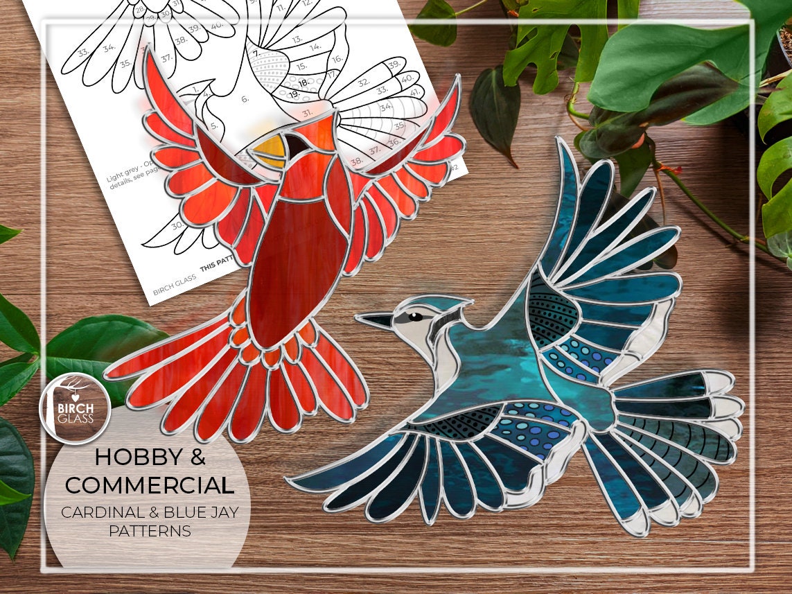 Stained Glass Pattern • PDF • Digital Download • Blue Jay • Suncatcher • Bluejay • Bird • Cardinal DIGITAL DOWNLOAD • This listing is for a PDF pattern digital download. Printable. A4.