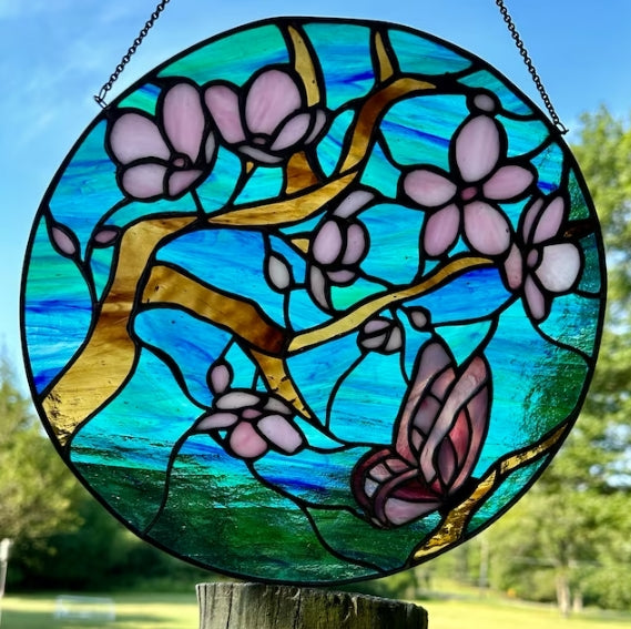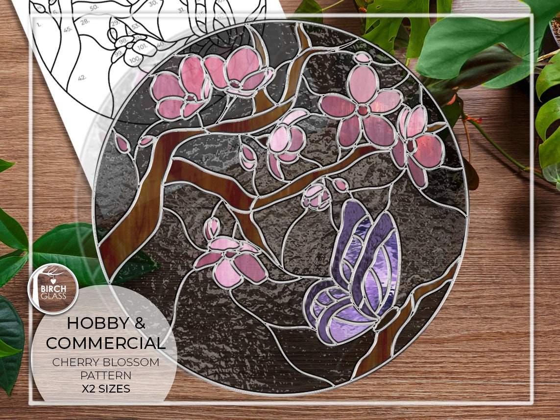 Stained Glass Pattern • PDF • Digital Download • Butterflies • Panel • Round • Peach Blossom • Sakura DIGITAL DOWNLOAD • This listing is for a PDF pattern digital download. Printable. A4.