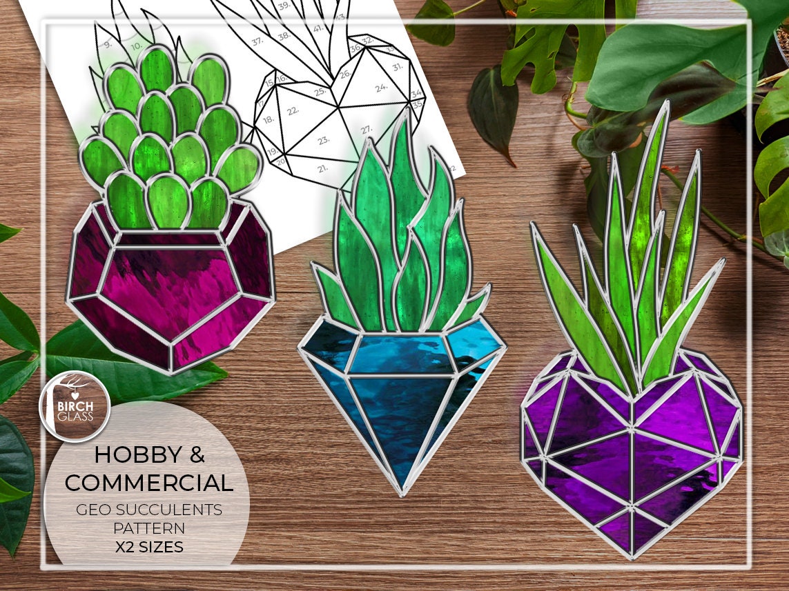 PATTERN • Geometric Succulents Stained Glass Pattern