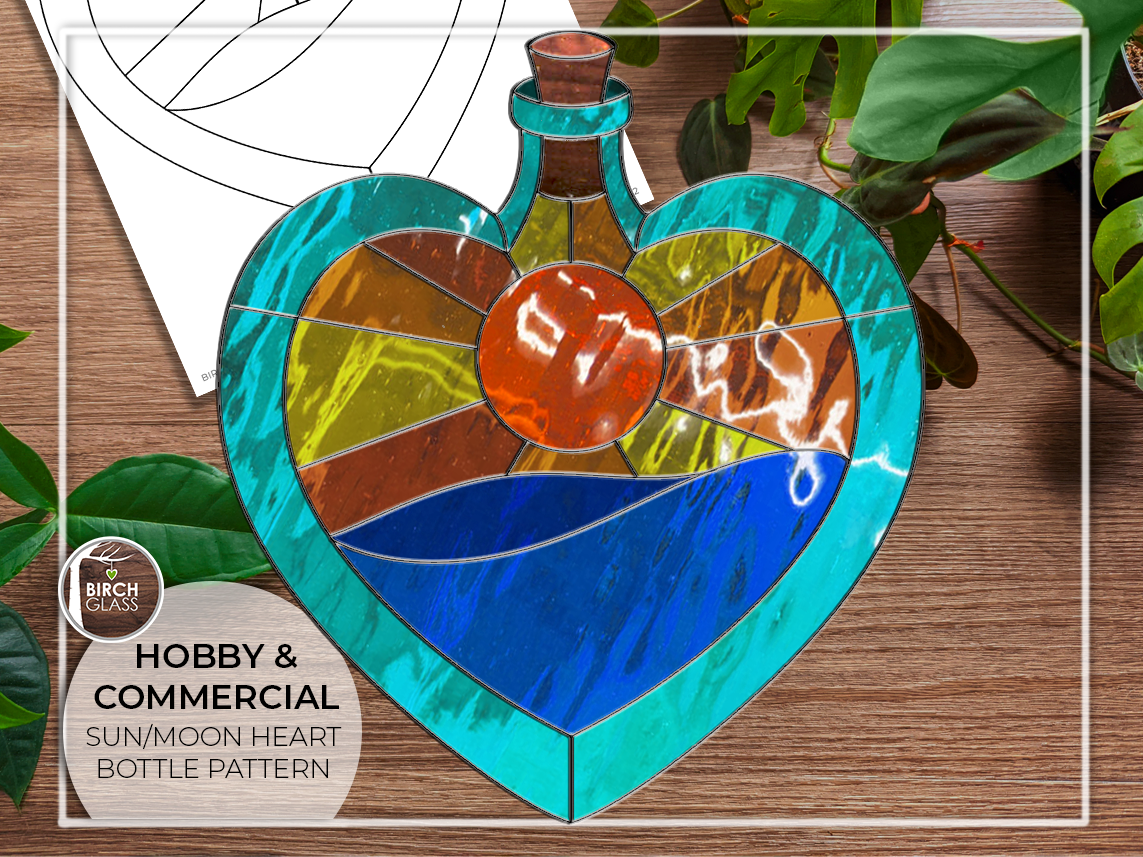 PATTERN • Heart Sunny Sky Potion Bottle Stained Glass Pattern